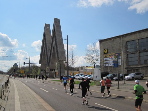 Mnoho velkých (a historických) měst volí dnes cestu dvojkolového maratonu. Výhody jsou nasnadě – není třeba kvůli závodu uzavírat tolik silnic a cest a díky tomu je možné dostat maraton do těsné blízkosti historických památek, pamětihodností a jiných chloub města. Lipsko zvolilo tuto cestu také. Na trať tak dostalo celkem šest závodů: maraton, půlmaraton, půlmaraton na kolečkových bruslích a pro vozíčkáře, 10 km, 4 km. Ke koloritu tratě patřily kromě vcelku očekávaných a dobře zásobovaných občerstvovacích stanic i nejrůznější produkce hudebních těles – od jazzové kapely po perkusní seskupení třískající v lahodných a svižných rytmech do plechových a umělohmotných barelů.