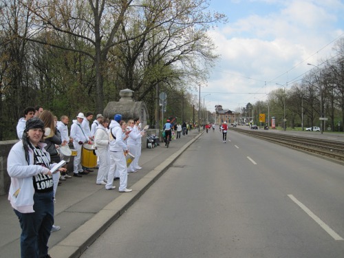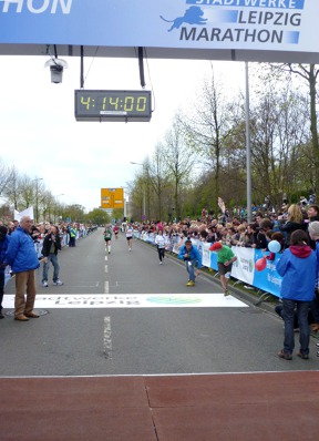 Po včerejším kopcovitém Dreiburgenland Marathonu byl ten lipský bohudík vcelku odpočinkový. Rovinatá trať mísená s pěknými výhledy a krásnou skutečností, že jsem se opravdu nemusel nikam hnát, neb jsem se angažoval jako vodič (Zeitläufer, Zugläufer nebo také Schrittmacher, Bremsläufer), tedy vlastně jakýsi brzdič na čas 4:14. Bylo to sice trochu delší, ale dalo se to vydržet. Možná vás zarazí ten podivný čas. V Lipsku se třeba nevodilo ani na čtyři hodiny, ale na 3:59. S pověstnou germánskou precizností je zde pomýšleno na skutečný stav při závodě: Vodič běží třeba na čtyři hodiny. Všichni, kteří chtějí dosáhnout této magické hranice, se drží v chumlech a hroznech za ním. Vodič dosáhne svého cíle 4:00:00. Všichni, co jsou za ním, jsou naštvaní, že „to dali“ za více jak čtyři hodiny. Sice o chlup, ale je tam něco navíc. Aby se tohle nestalo, běží vodič na 3:59. Celý chuchvalec jeho následovníků tak má ještě pohodlnou minutu na to, aby se propasíroval cílem v čase 4:00 nebo těsně pod. No není to chytré?!